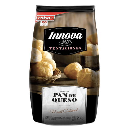 Por cada 1kg de premezcla para preparar Pan de Queso utilizar 400g de queso rallado o trozado y 400g de huevos.